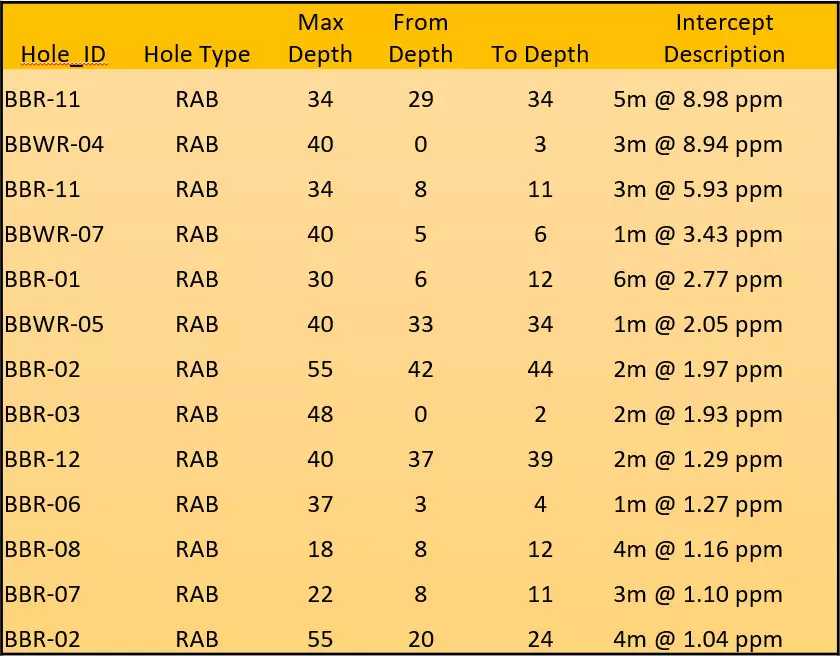 • Encouraging RAB drilling results (up to 28.3 ppm Au) within license
