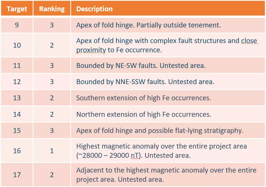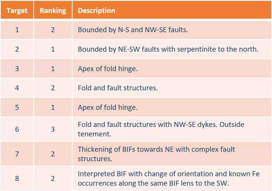 MULTIPLE IRON ORE TARGETS ON 45 KM TREND CONTROLLED BY GOLDZONE