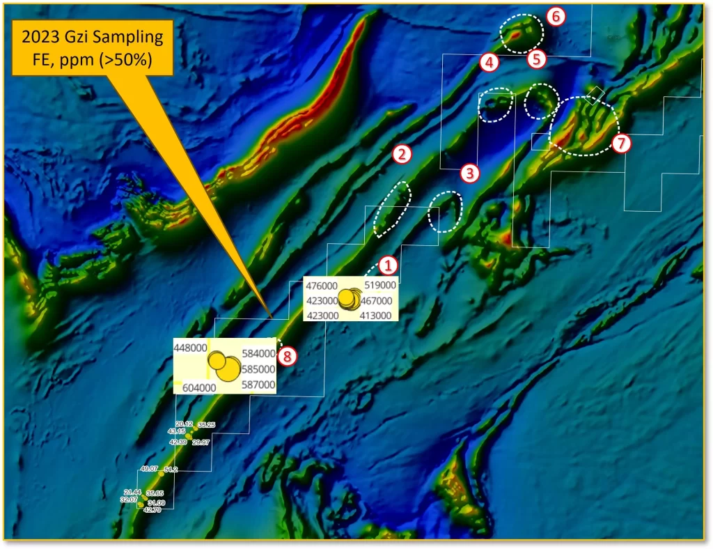 - 2023 GZI Sampling confirms FE prospectivity of key targets 1 and 8.